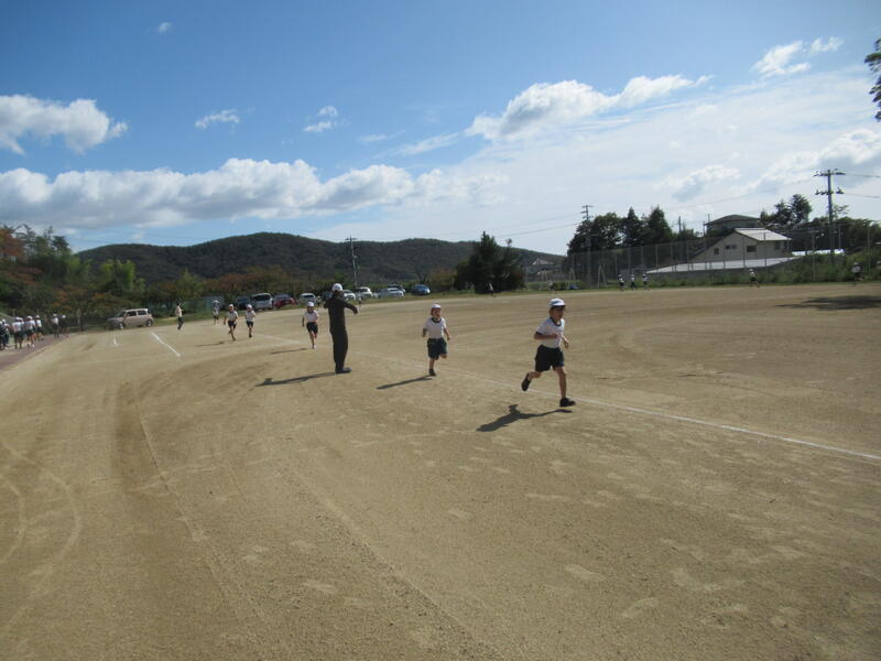 上学年と下学年に分かれて、今年も走ります!1年生も歩かずに最後まで走れるようになってきました。すごいです。