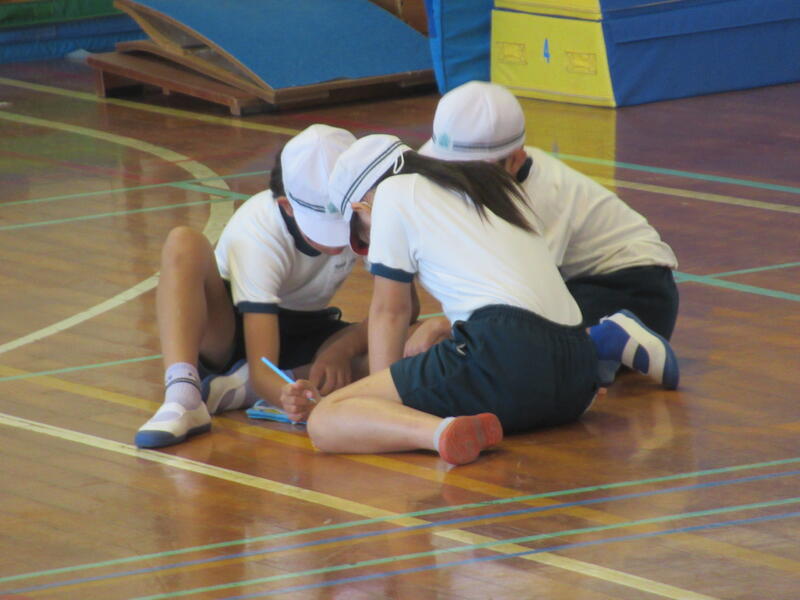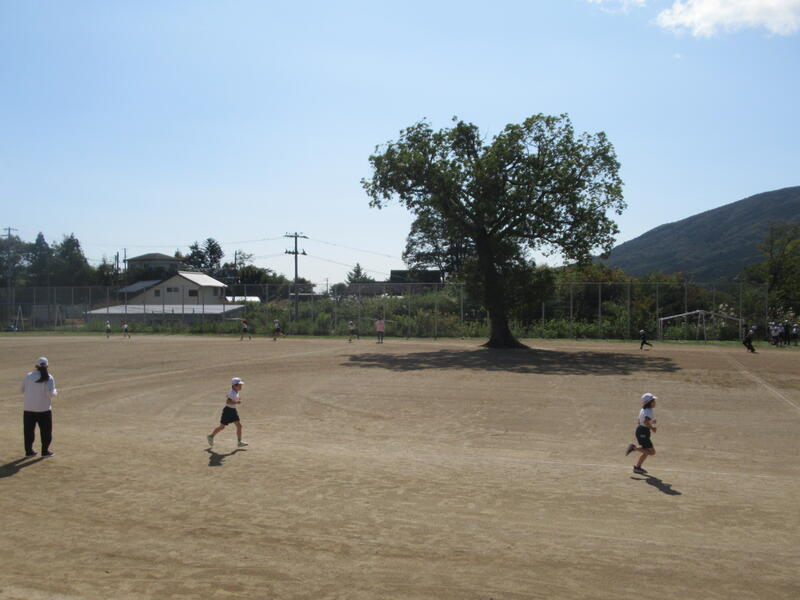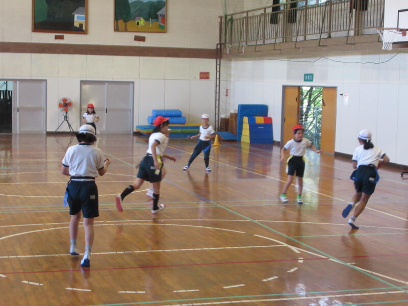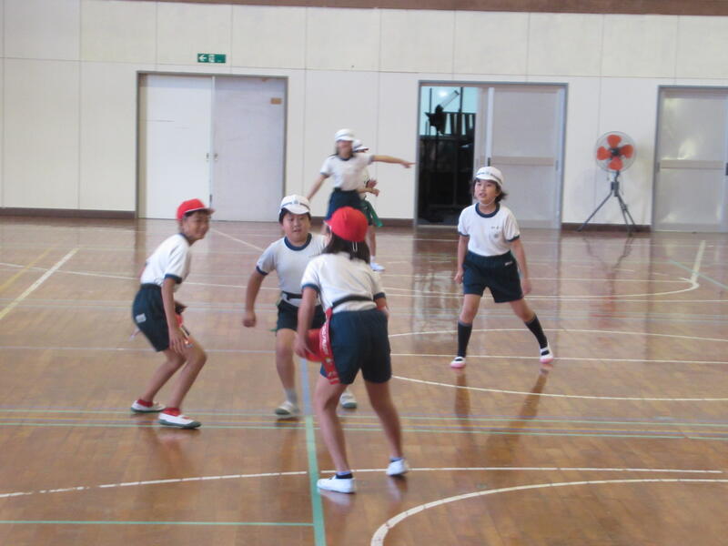 3年生、4年生は体育でタグラグビーの試合をしていました。作戦を立てて、チームでゴールを目指します。先日のラグビーワールドカップを思い出すような、全力プレーが各チームとも見られました(^^)