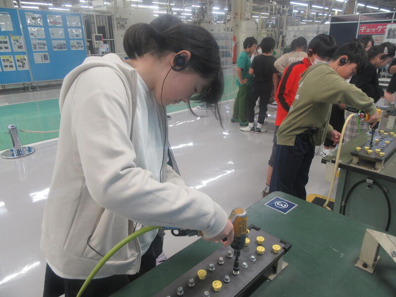 体験コーナーでは工場内の工夫ロボットの体験をさせてもらいました。「安全に・早く・楽に・正確に」できる工夫が学べました。