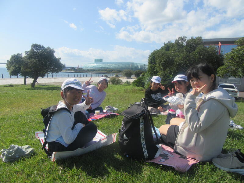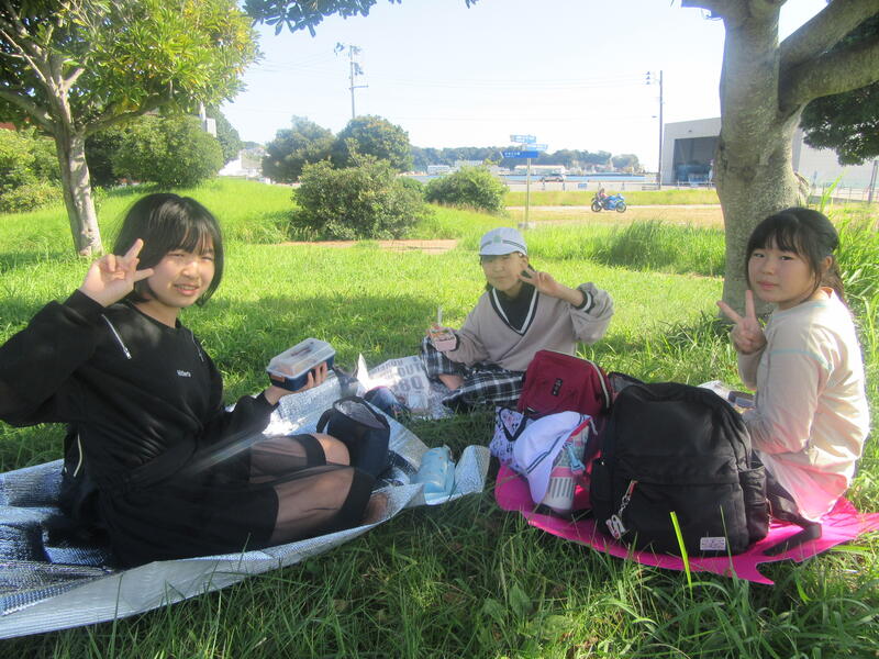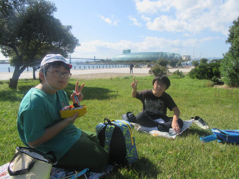 天気もよく秋晴れのもといわきららミュウ隣の公園でお弁当タイムです。潮風に当たりながらのお弁当もいいですね。