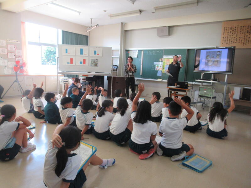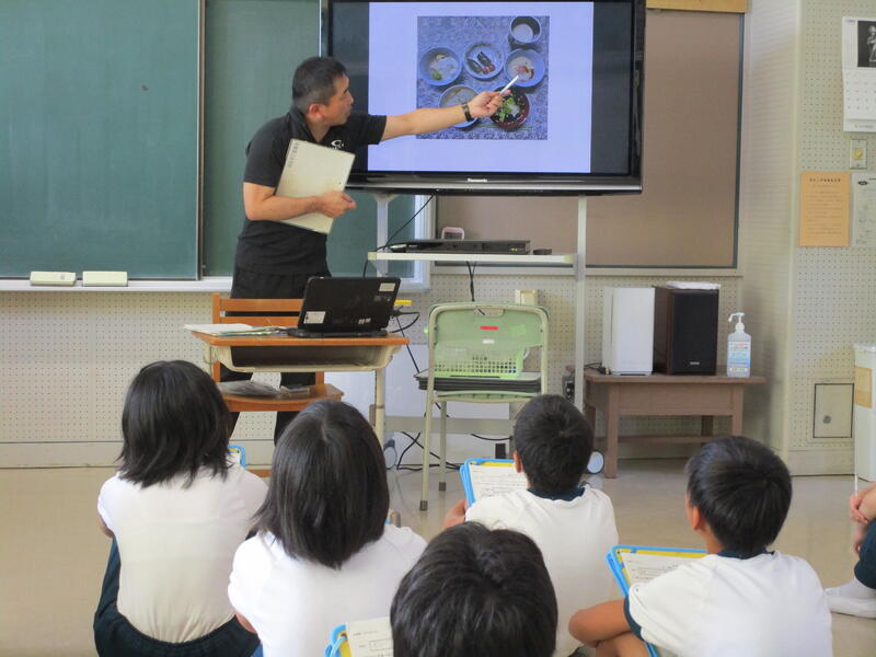 10月19日(木)三和給調主任栄養技師の澤村先生をお呼びして授業を行いました。年に数回、学級活動の時間に食育の授業を実施しています。今回は「朝食について見直そう」という内容で、上学年と下学年に分かれて授業を行いました。食に関する正しい理解をもとに望ましい食習慣が形成できるよう、澤村先生から詳しく教えていただきました。
