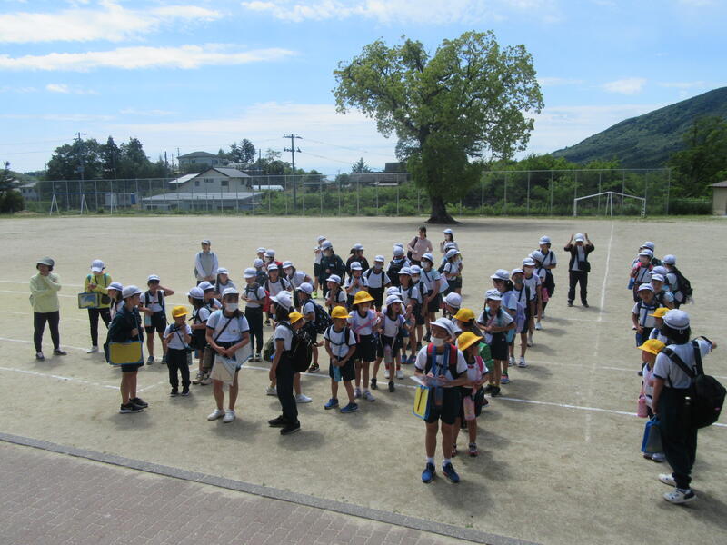本日は晴天に恵まれ、いつもよりもさらに元気なあいさつで一日がスタートしました。待ちに待った遠足です。今回は「ぐんぐん班のみんなと協力して、ゴールを目指してほしい。」「高野町のすばらしい自然や文化にふれてもっと高野町を好きになってほしい。」と願いを込めての行事です。元気に歩いていきましょう。「行ってまいります!」