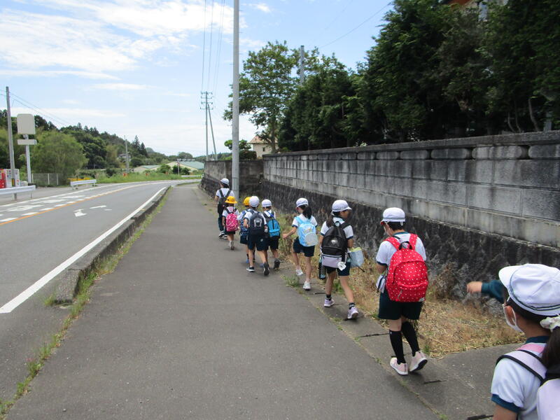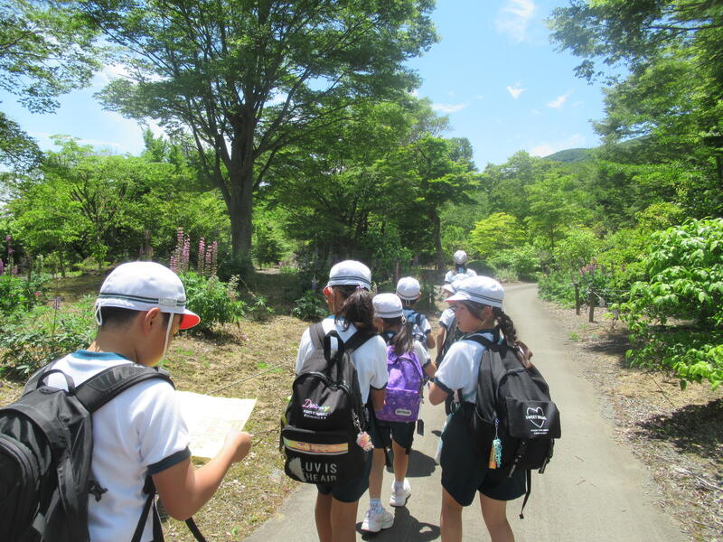 道のりは長いです。風は涼しいですが、歩くと喉が渇きます。こまめな水分補給を、6年生が所々で声かけしてくれます。
