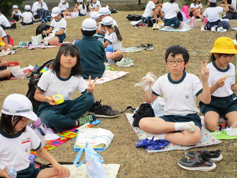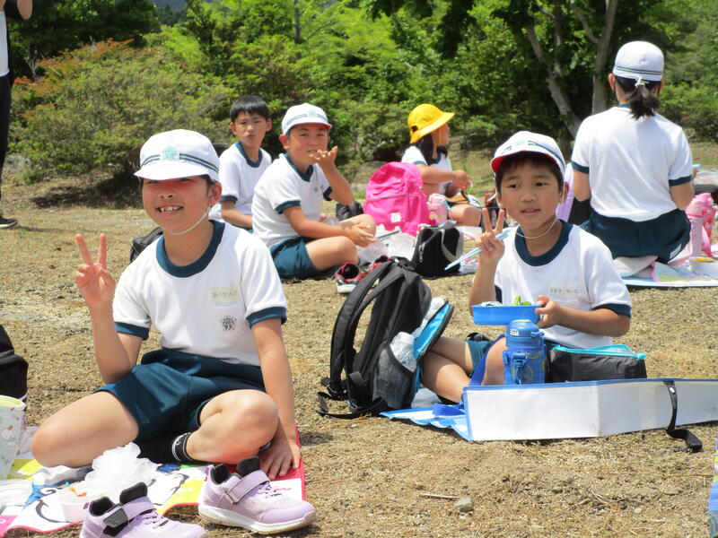 友達とうんと協力した後は、天気のいいお外でのお弁当です。高野町で最高の時間をすごしていました。朝早くからのお弁当作り、ありがとうございました。本日は大変疲れているかと思いますので、どうぞゆっくりと休まれてください。みなさん、最後までみんなで一緒に歩けたね!全員が100点満点の、笑顔でいっぱいの遠足でした!!