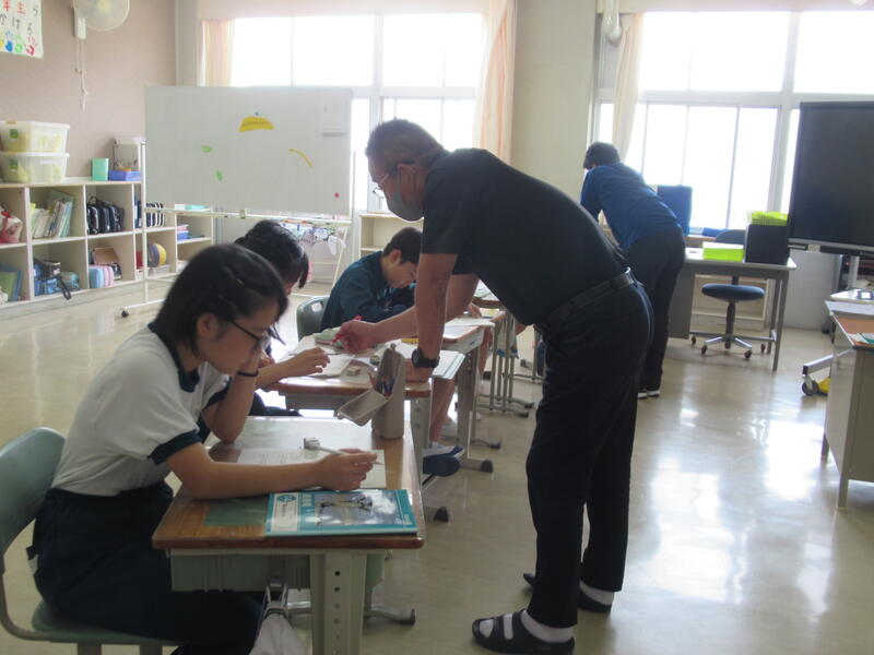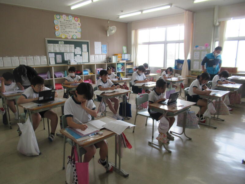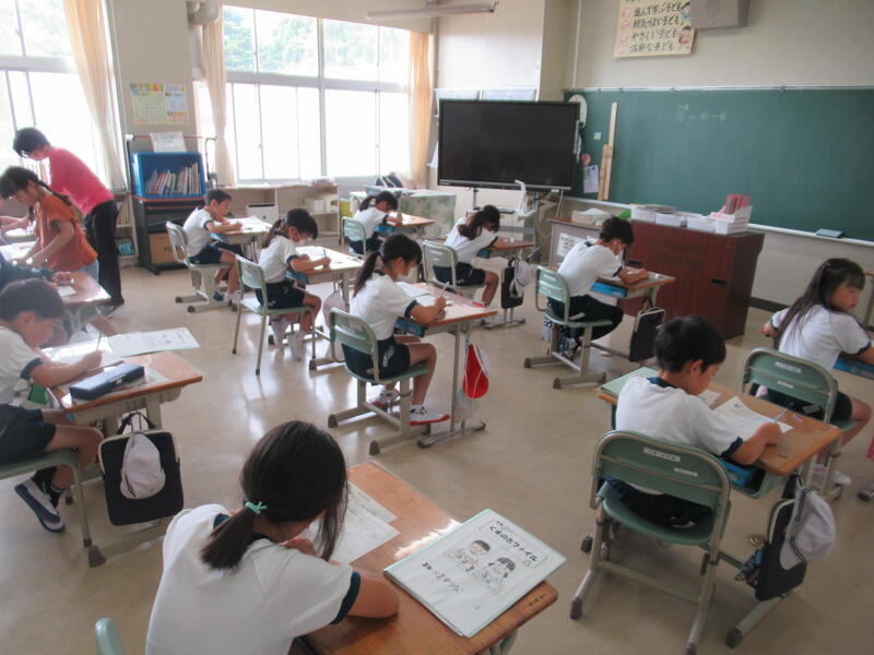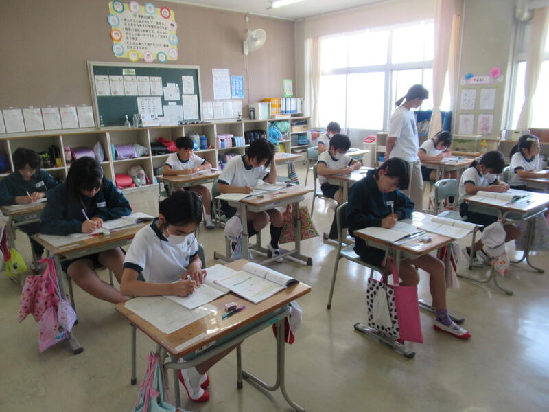 毎週火曜日2~6年生は「あさくす」の日です。8:00からの10分間、高野っ子は算数の問題に挑戦します。難しい問題にもチャレンジしようとする姿勢がどの学級でも見られました。今日から、中学校の先生方も指導に来てくださいました。2人体制で子供たちの取組を見られるので、分からない問題に当たっても優しく教えてもらい、次の問題につなげます。