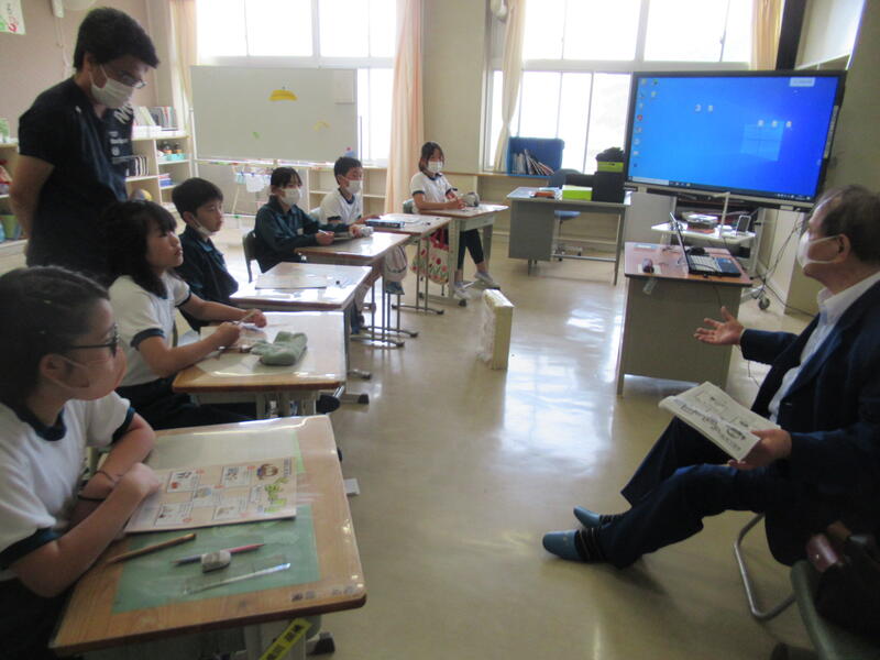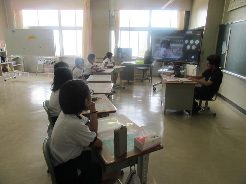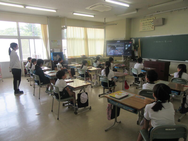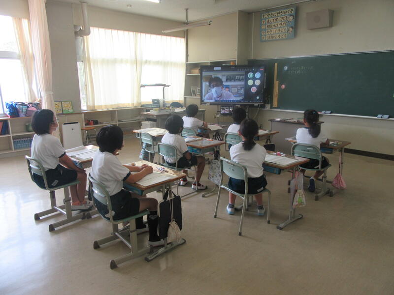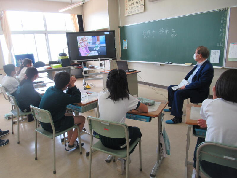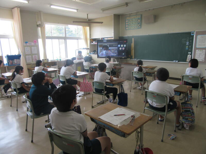 今回は校長室からオンラインでの指導になります。「大きくなっても自分の歯を残せるように!」と先生は話し始めます。ある患者さんの自分の歯がなくなってしまい悲しそうにしていたというエピソードを話してくださいました。「みんなには美味しいものをいつまでも食べてほしいな!」と先生は熱く話してくださいました。