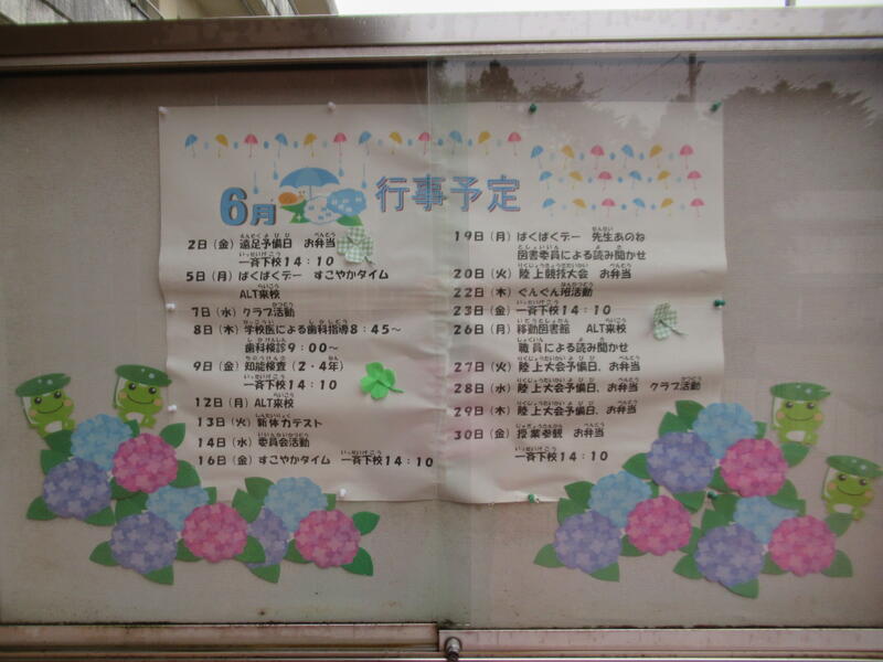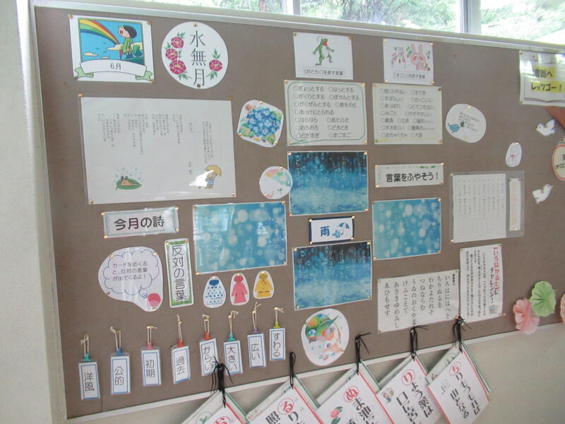 6月になりました。校舎内の掲示物も模様替えです。6月にぴったりの言葉が見つけられそうですね。