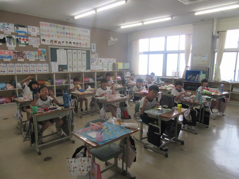 歯科指導の後は歯科検診です。日頃から丁寧に磨いている子は、先生にほめてもらっていました。後日、検診結果を各家庭に配付します。むし歯等治療が必要な場合、早めの受診をおすすめします。また、今後も学級懇談会や学校保健委員会でもお子さまの健康について呼びかけていきます。よろしくお願いいたします。
