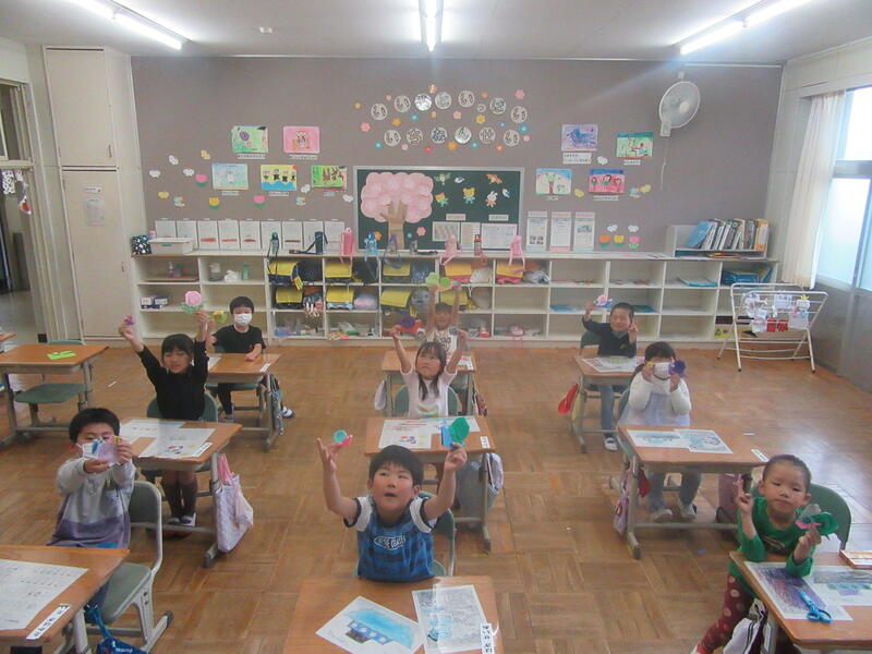 1年生は5校時に、図工の「教室のかべをかざろう」の学習で、折り紙でかたつむりを折っていました。先生の話を聞いて、お手本を見たり友達に聞いたりしながら、かわいい作品をつくっていました。できあがった作品を、みんな笑顔いっぱいで見せてくれました。とても上手に作っていました(^^)