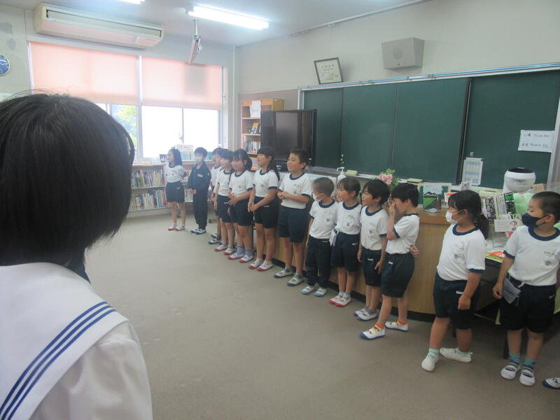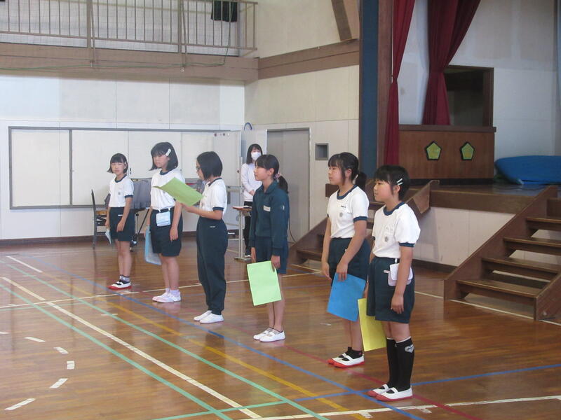 明日6月13日(火)から中体連バドミントン大会が行われます。その話を聞き、1・2年生は応援のメッセージを書き、応援に行きました。さらに、バドミントン部のお兄さんお姉さんの前で「がんばってください!」と立派にエールを贈りました。中学生のみなさんも、先生方も可愛らしい1・2年生の応援にとてもにこにこ喜んでいました。
