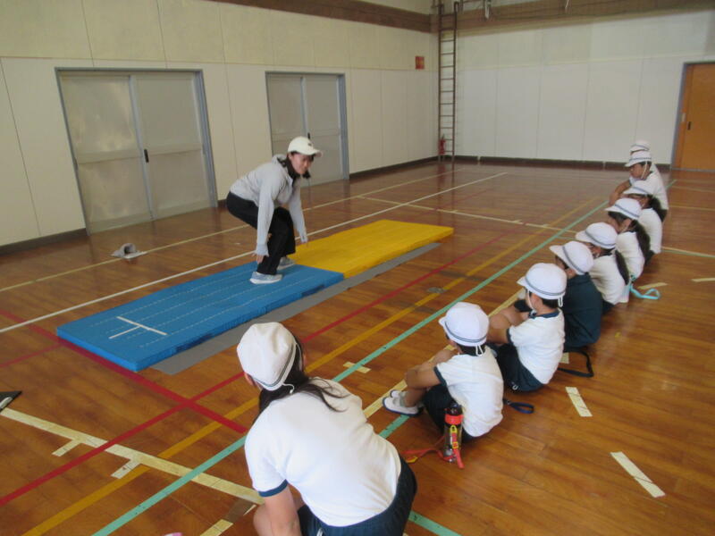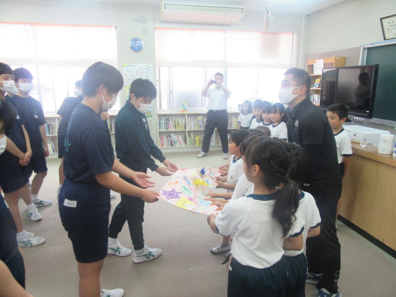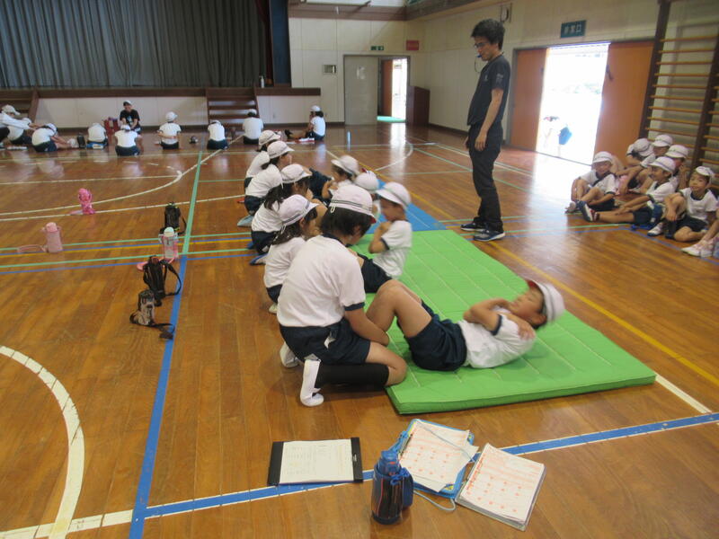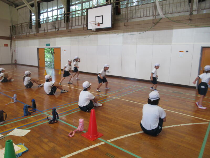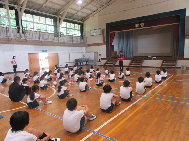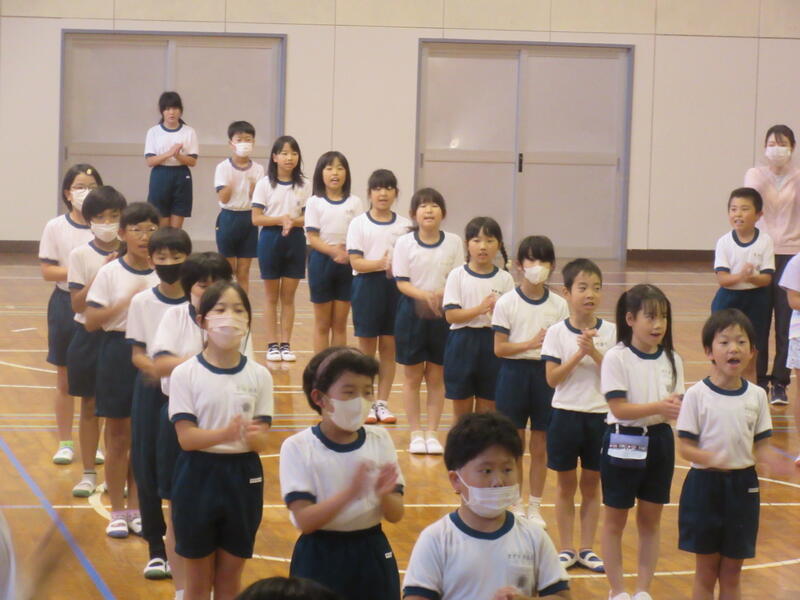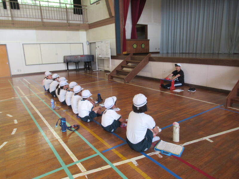 本日、大休憩に体育館から元気のいい声が聞こえてきました。体育館へ行ってみると1~5年生が集まっていました。