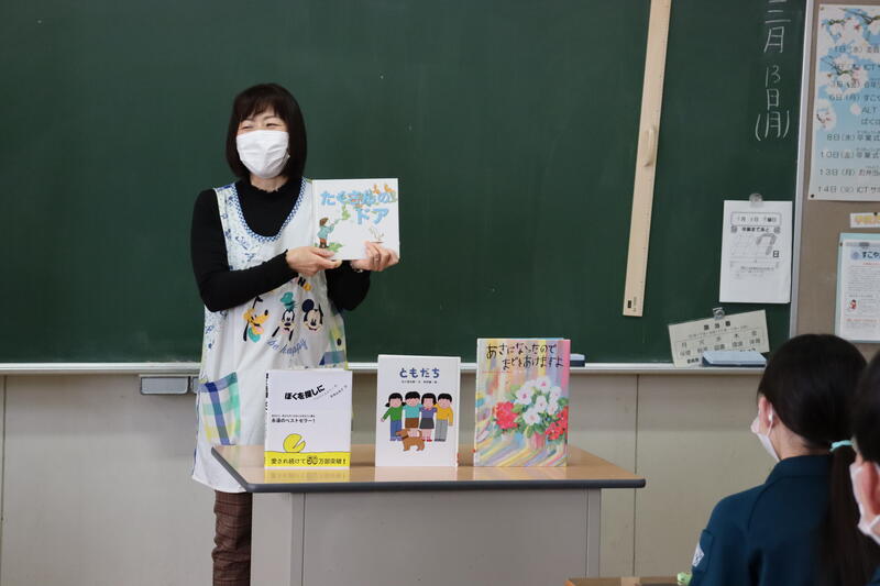 司書教諭の吉田先生が、卒業する6年生へ贈る言葉として、読み聞かせを行ってくださいました。