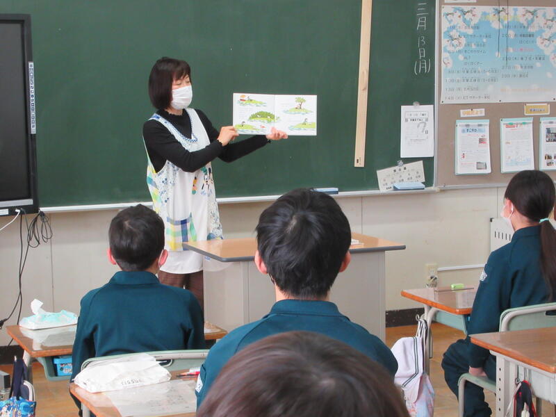 と始まる、絵本です。吉田先生の読み聞かせを真剣に聞く6年生。