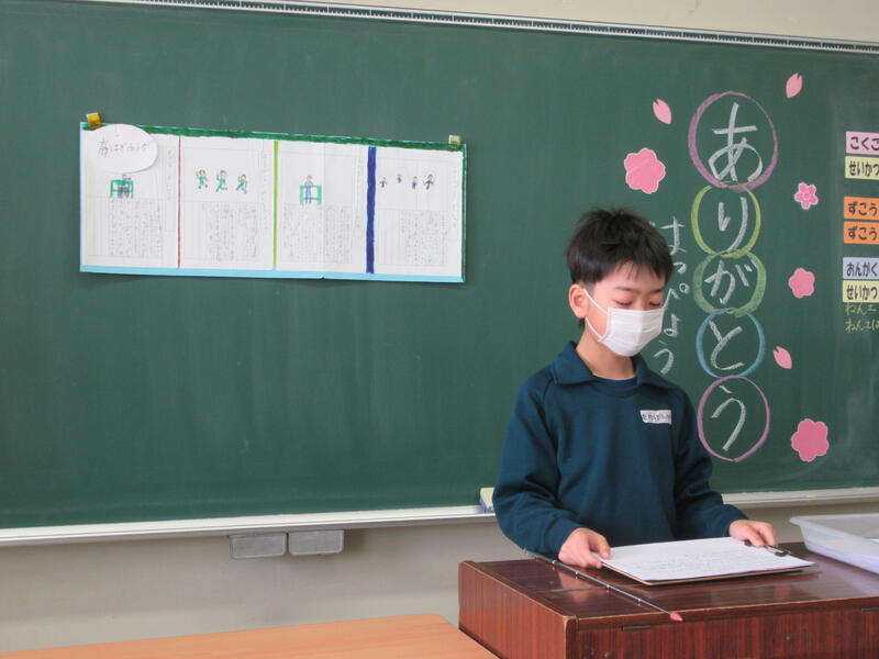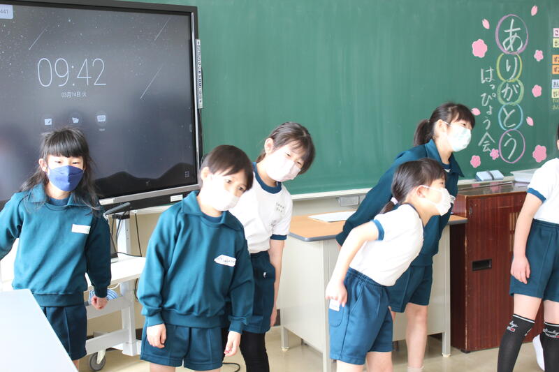 全校生を代表して、5年生が先生方に感謝の言葉を伝えました。一人一人の目を見て、しっかりと感謝の気持ちを伝えていました。