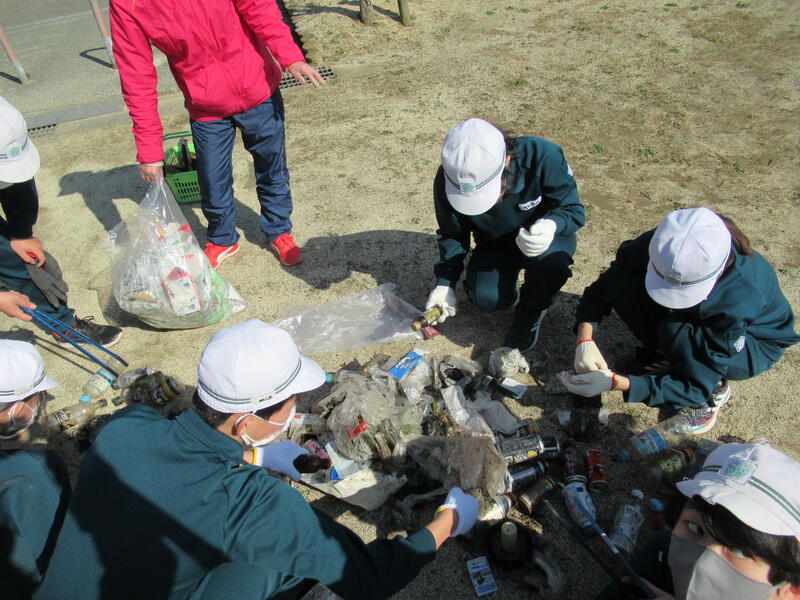 校庭に戻ってから、分別を行いました。