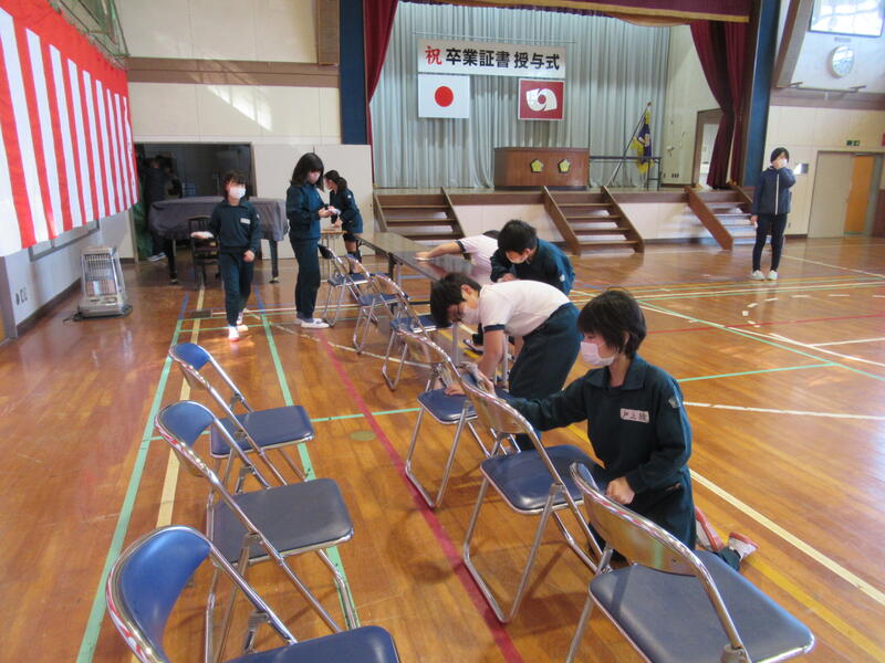 3/15(水)の6校時に、卒業式の会場作成を行いました。