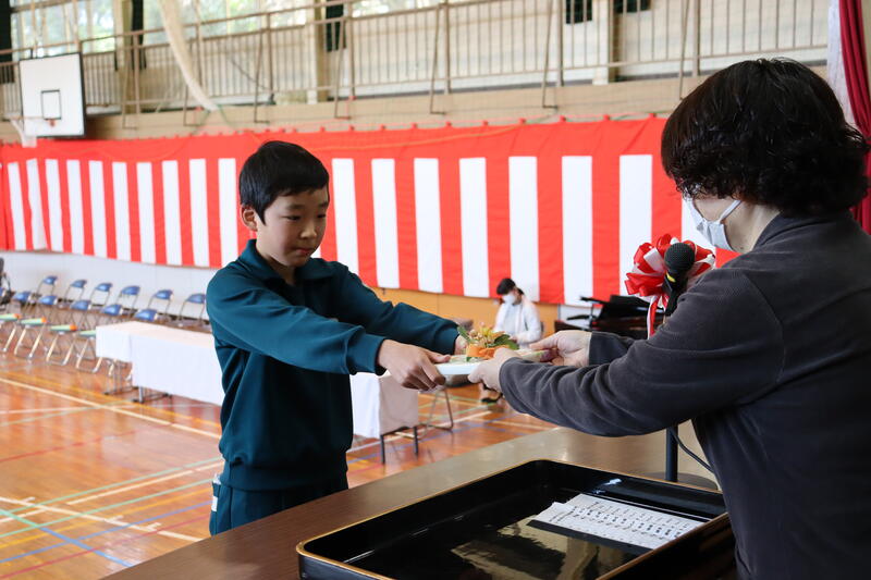 5年生児童が代表して修了証書を受け取りました。
