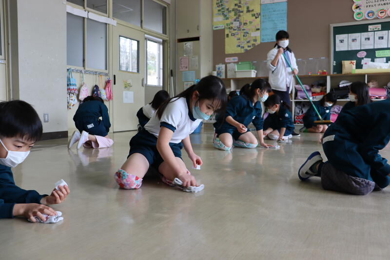 いつも私たちを見守ってくれている高野小の校舎に、「ありがとう」の気持ちを込めて清掃しました。