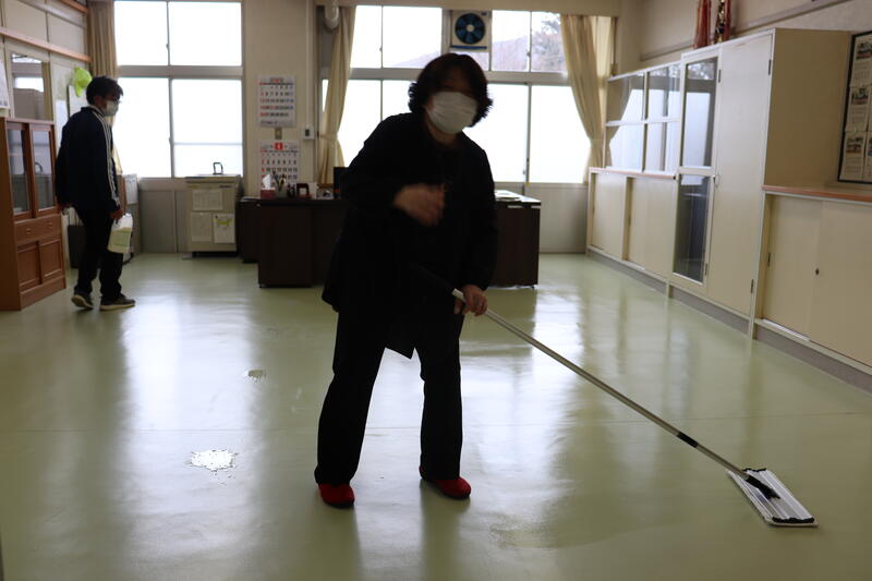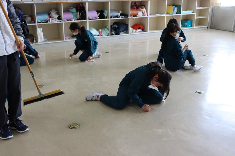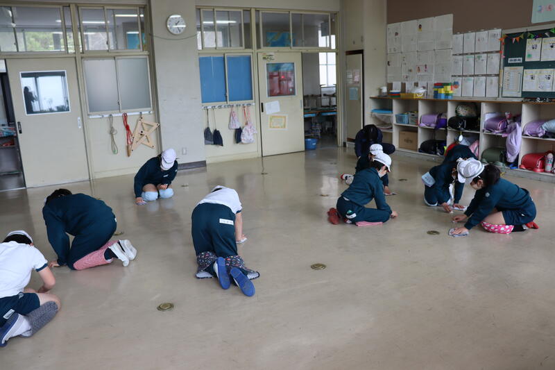 子供たちが、下校した後、職員が教室のワックス掛けを行いました。