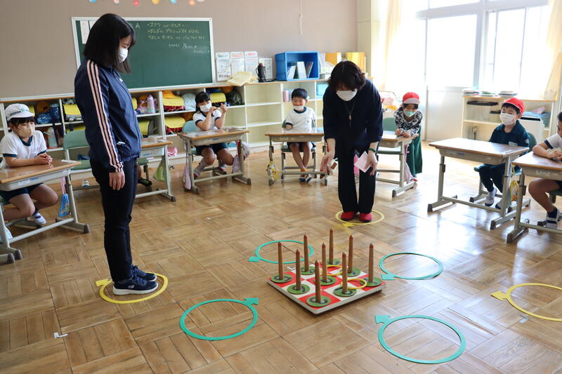 職員室の先生方も参加して、輪投げ大会やビンゴゲーム大会をして楽しみました。