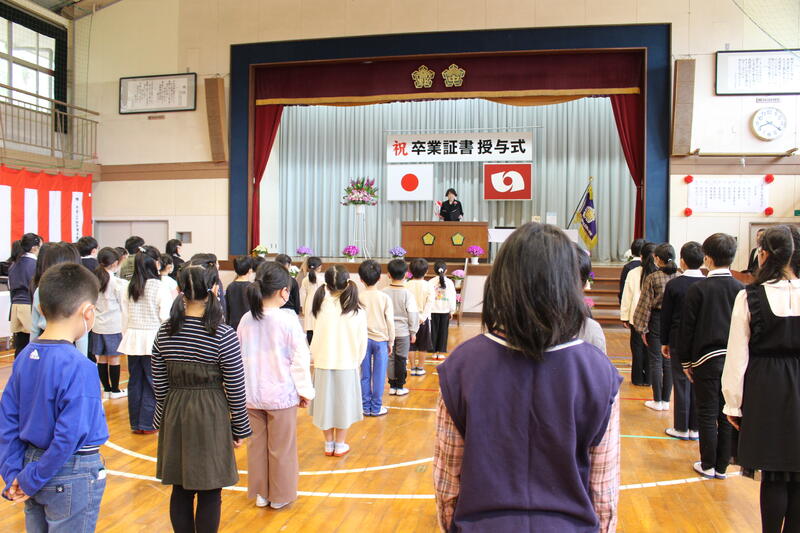 緊張感漂う中「別れの言葉」はもちろんですが、6年生の一つ一つの行動が堂々としていて、4,5年生も最後まで集中して立派な態度で臨むことができました。この1年間の大きな成長を感じました。