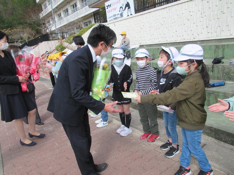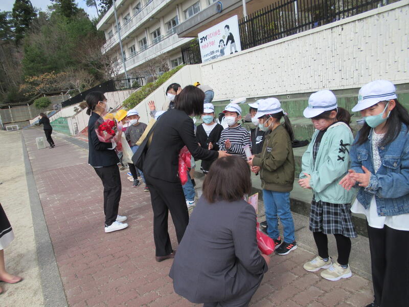 転出される先生方が車で出発されると、みんなが遠くから手を振ってくれていました。