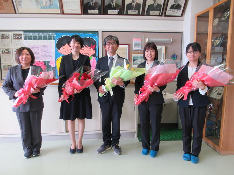 本日、離任式を行いました。今年度は5名の先生方とお別れをすることとなりました。