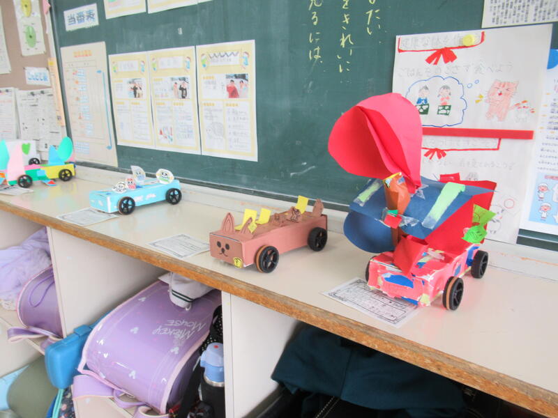 理科で学習したゴムの性質を利用して、走る車をつくりました。