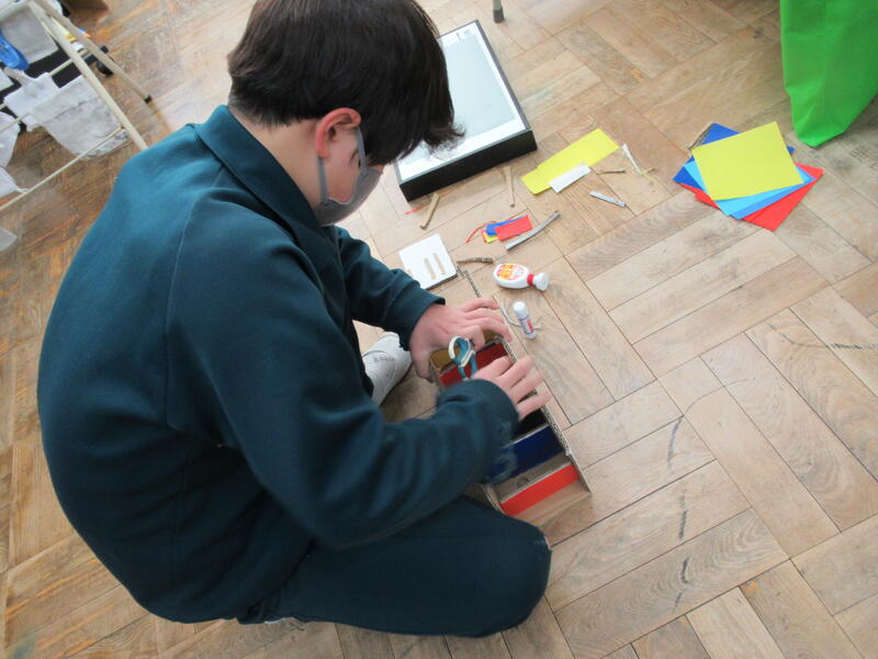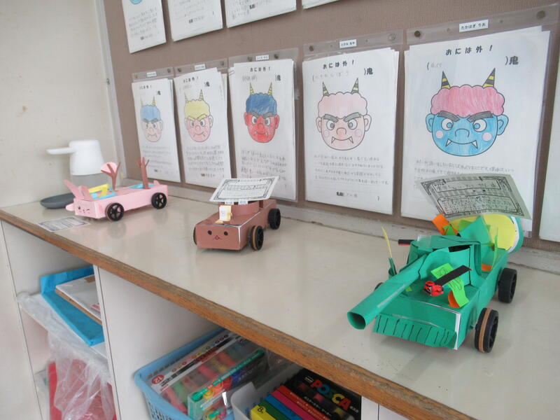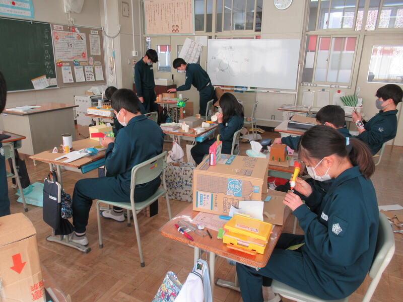 2,4,6年生が、図工の学習で箱を使った作品を作りました。