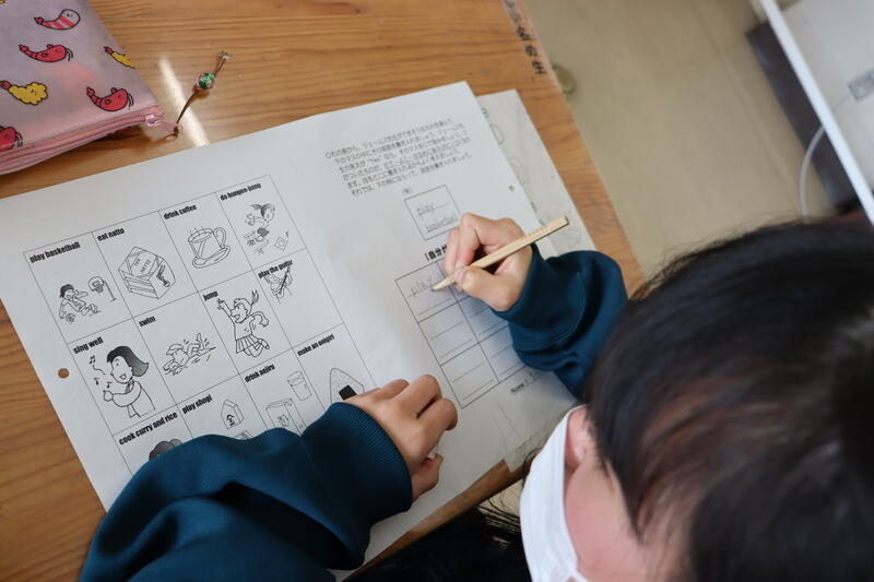 ビンゴゲームでは、ジェームス先生ができそうなこと(Can you~?)を9つに絞り、アルファベットで書き写して発音しました。ジェームス先生とのやりとりの中で、英語を聞き取る耳も鍛えられているようでした。