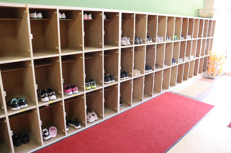 2学期から、下足入れのふたを取り外しました。