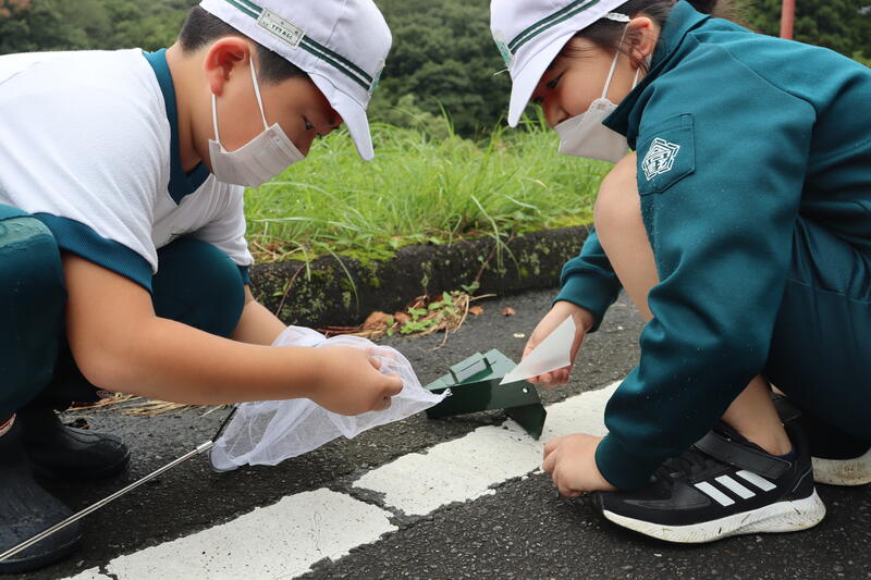はじめに、学校周辺でチョウ捕りをしました。