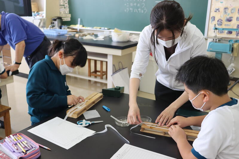 ちょっとドキドキする1年生。さあ、どんな音がするのかな。
