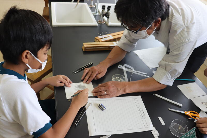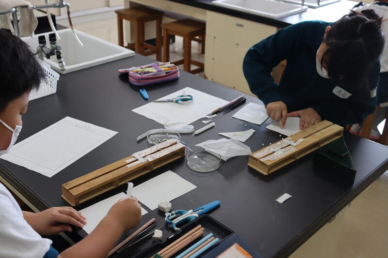 次に、校舎にもどってきて「標本作り」と「りんぷん転写」を行いました。