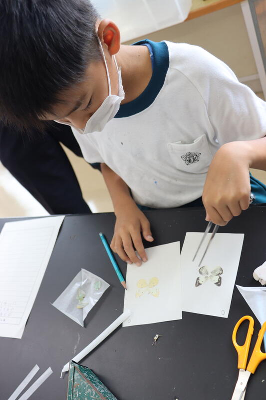 チョウの大切な命をいただいて、学習に励みます。