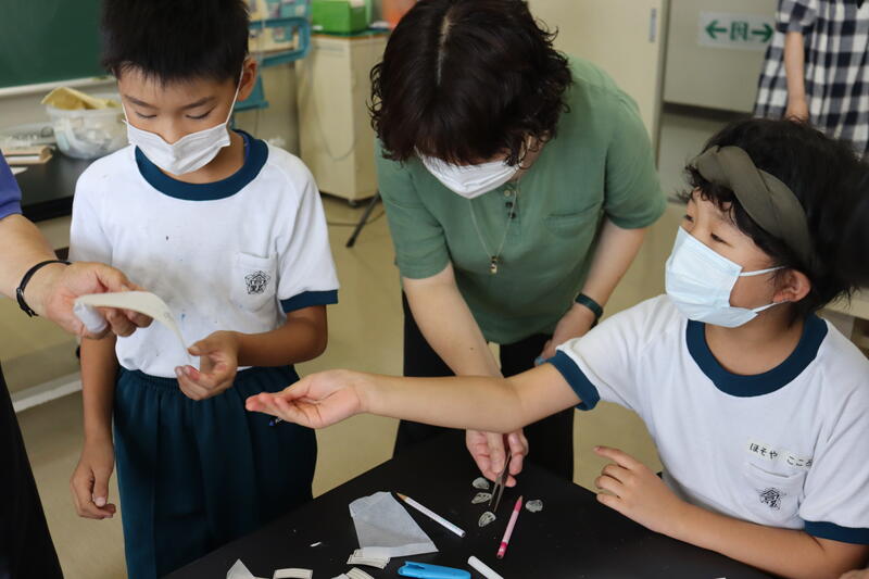 見事!りんぷん転写完成です。できあがるたびに、子供たちから「きれい~」「すご~い」と歓声があがりました。