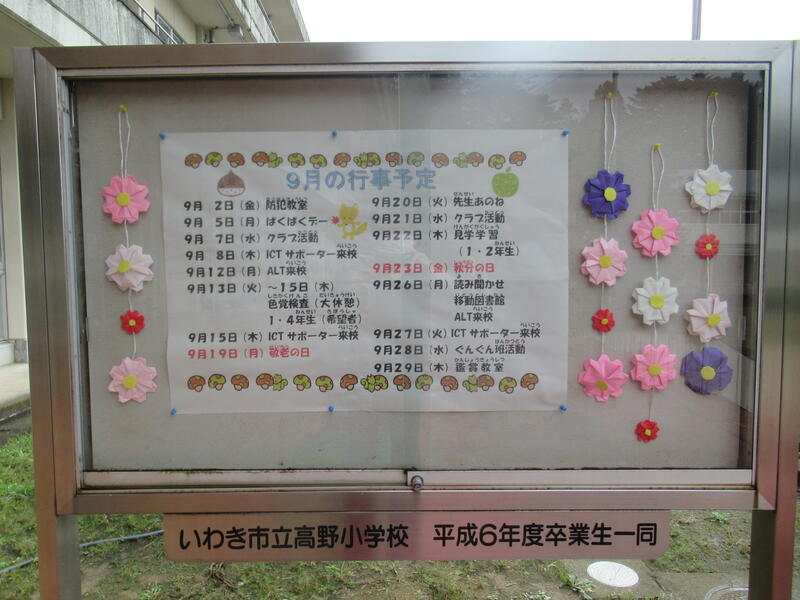 校舎内外の掲示物なども模様替えです。今月の行事予定です。