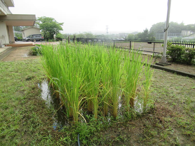 今日から9月です。5年生が植えた稲も、夏の暑さですくすく大きくなりました。