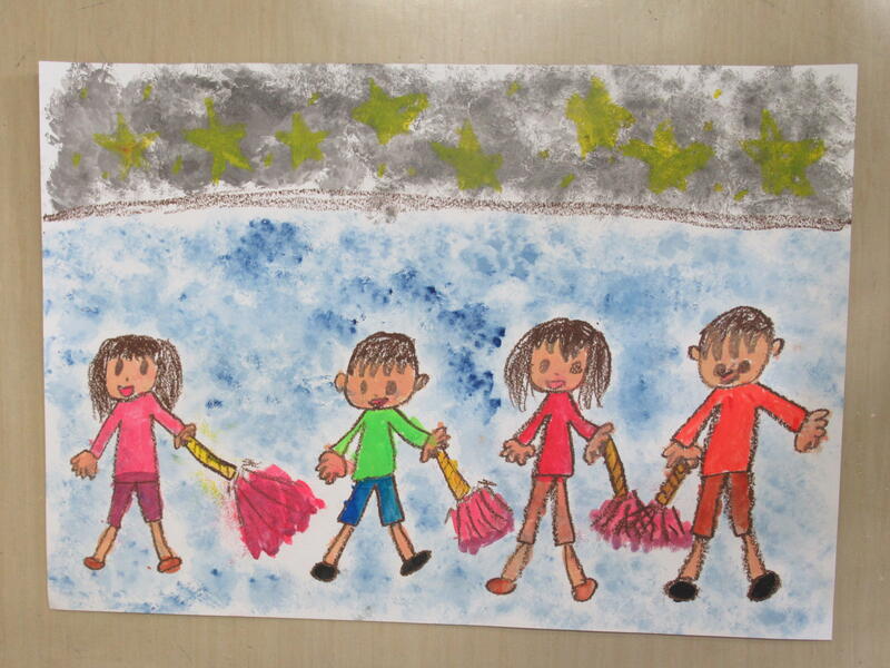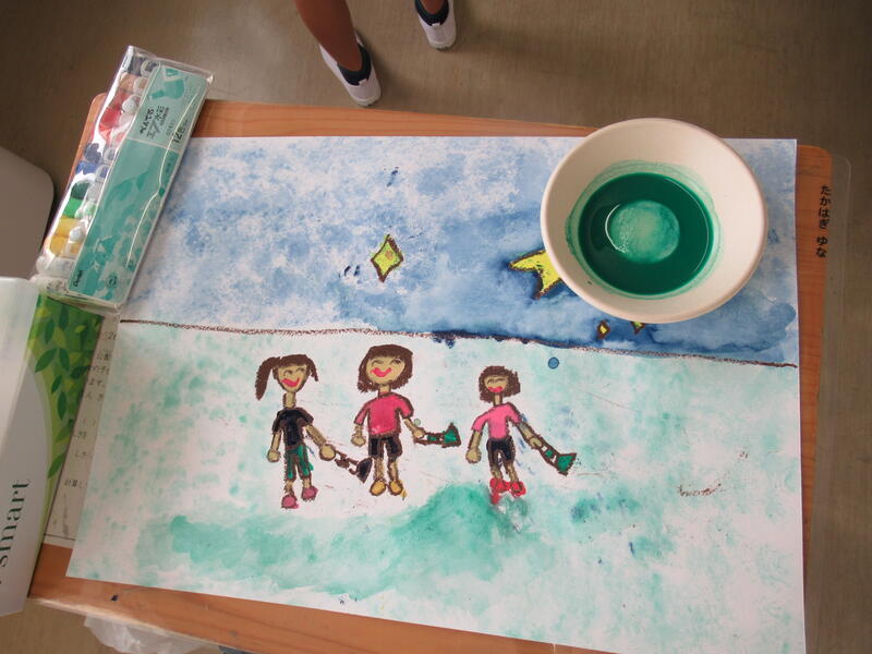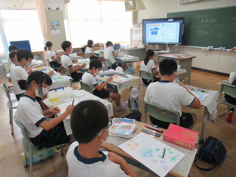2年生の図工では、子供たちが夏休みの思い出を描いていました。