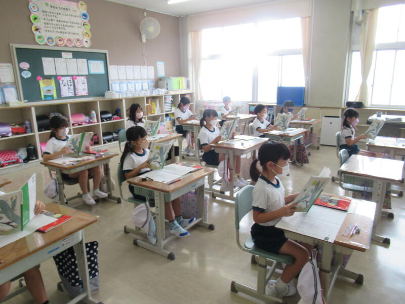 2年生の、国語の授業での音読の様子です。みんな真剣に姿勢よく音読をしています。