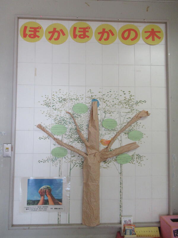 昇降口に掲示している「ぽかぽかの木」です。