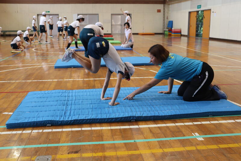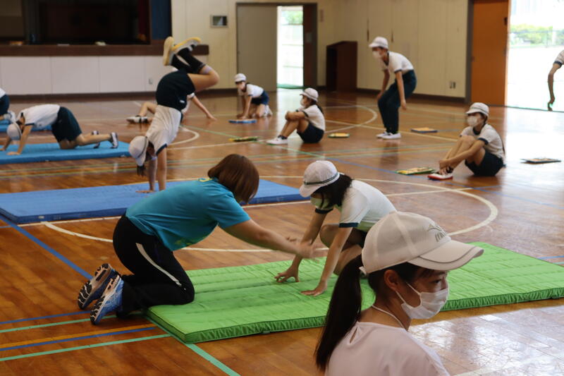 1年ぶりのマット運動ということもあって、基本の技等これまでに学習した運動を振り返りました。
