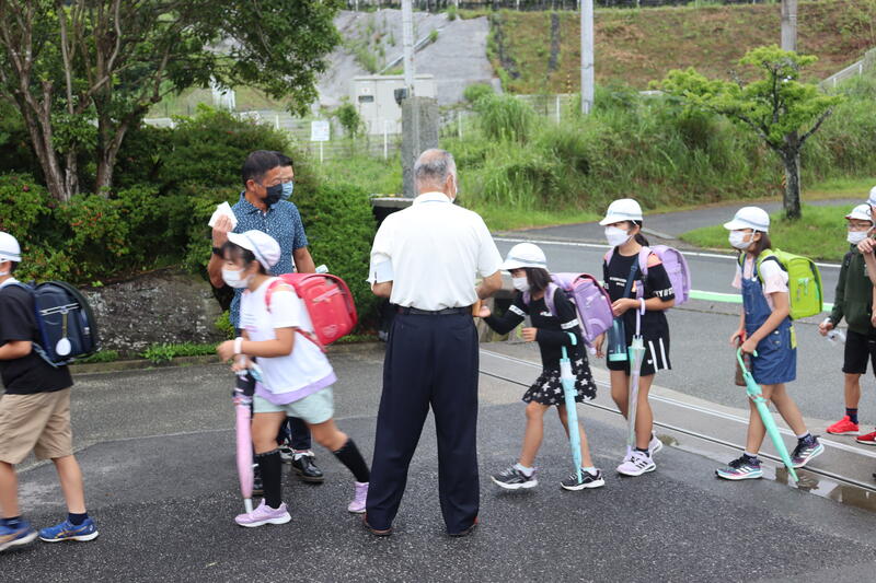 集合時刻は守れたか、一列になって登校できたか等確認しました。