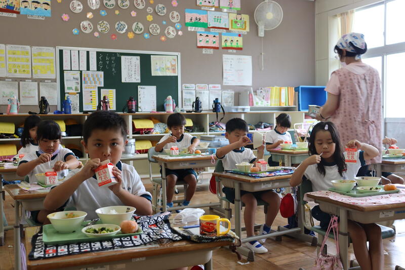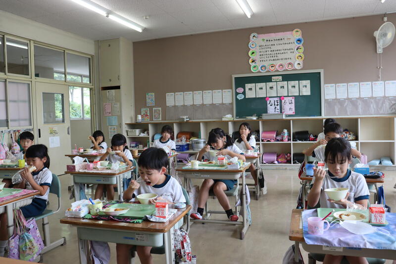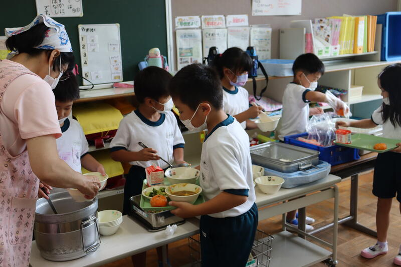 落ち着いて配膳する1年生です。振り返ると、1学期に、できるようになったことがたくさん増えましたね^^