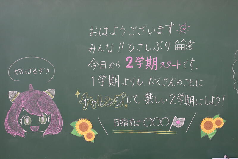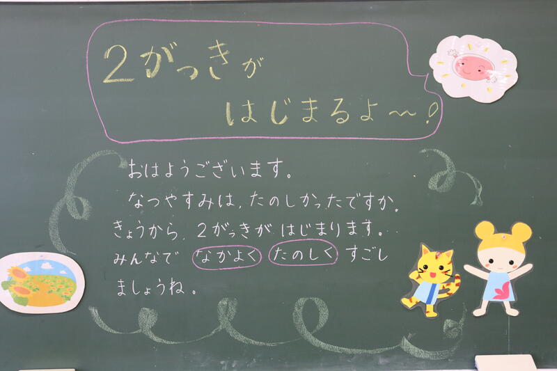 ここで少し学級の黒板をお見せします。さて、何年生の教室でしょうか?答えは明日のお楽しみです。
