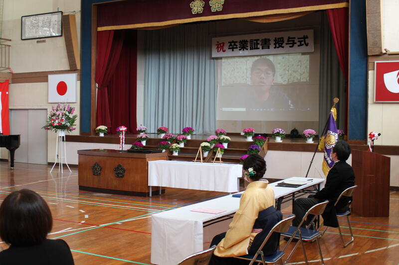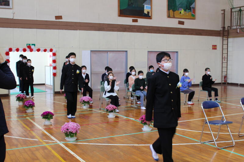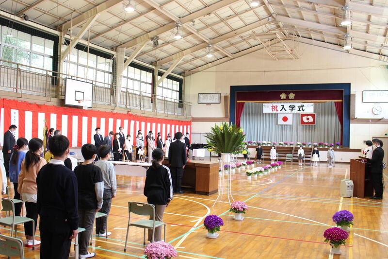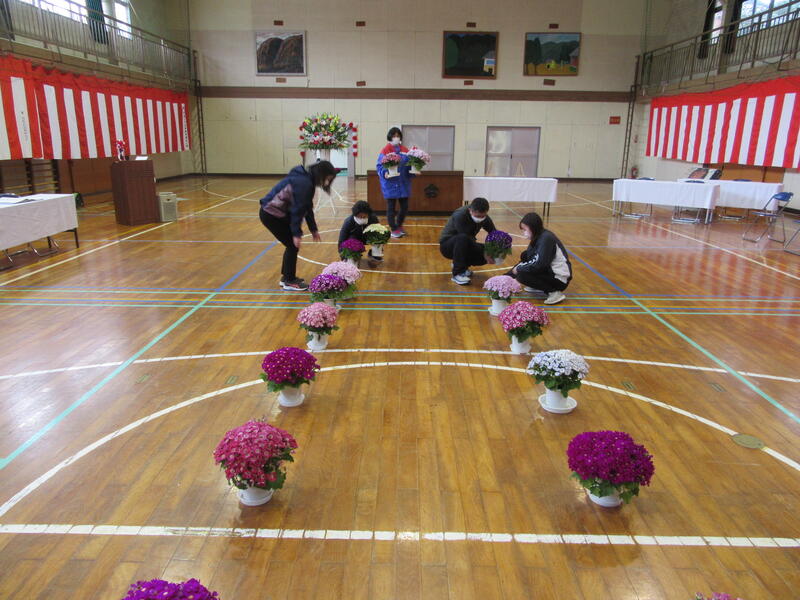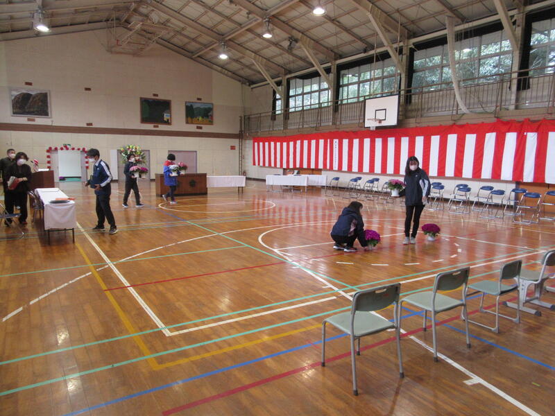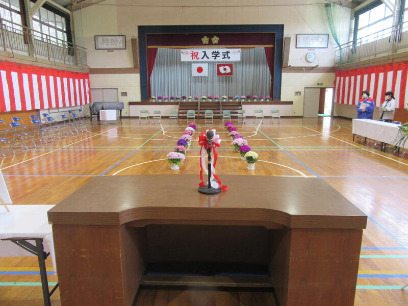 明日の入学式、始業式に向けて先生方で準備をし、会場ができあがりました。