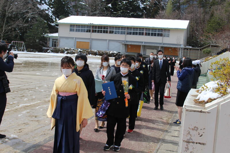 <卒業生の退場> たくさんの拍手の中、胸をはってしっかりと歩く卒業生の姿に、「やりきった」という思いが伝わってきました。