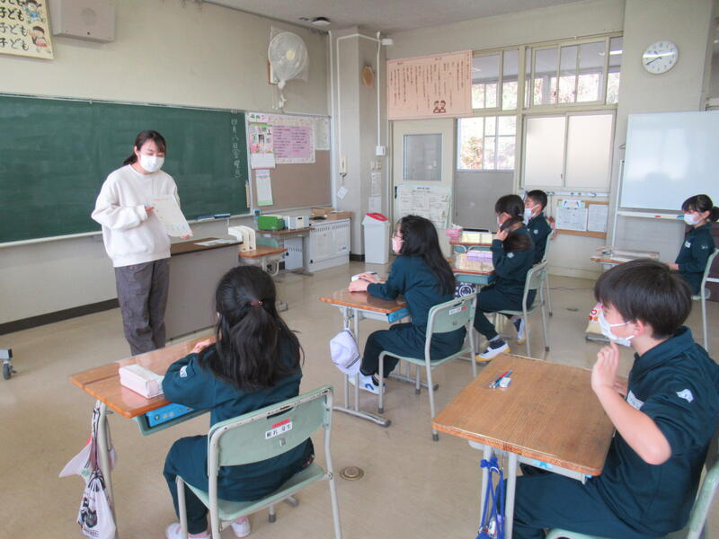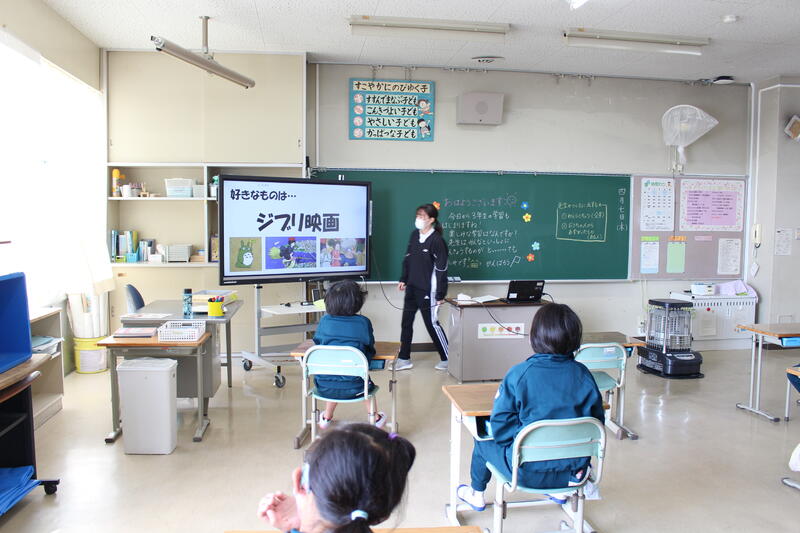 3年生・・・先生が、自己紹介をしていますね。楽しんでお話を聞いています。