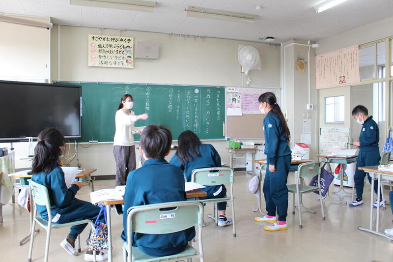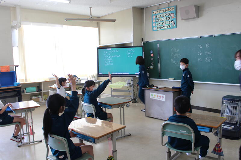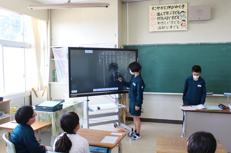 5年生・・・自己紹介を兼ねて、早速国語の授業を始めています。