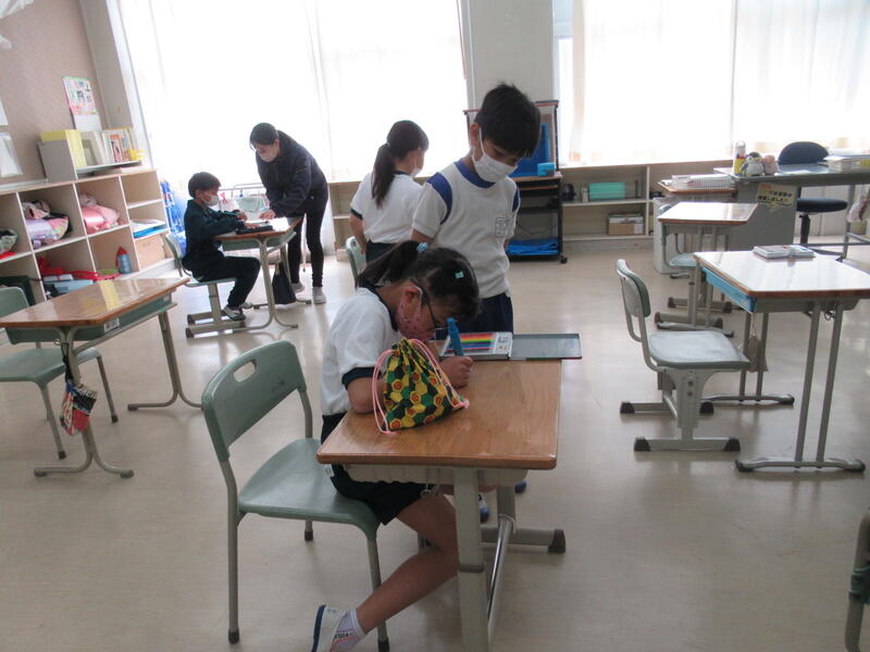 2年生・・・4月の行事を確認しているようです。教室が2階になって、わくわくしているようです